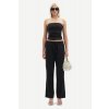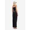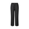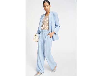 Ľanové nohavice voľného strihu s rovnou siluetou nohavíc. V páse na gumu a šnúrku. Vrecká na bočných švoch, detail falošného zadného lemu vrecka.