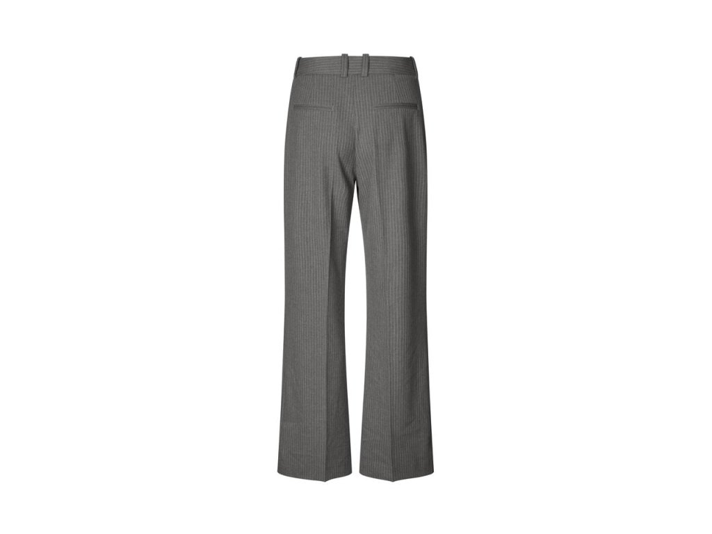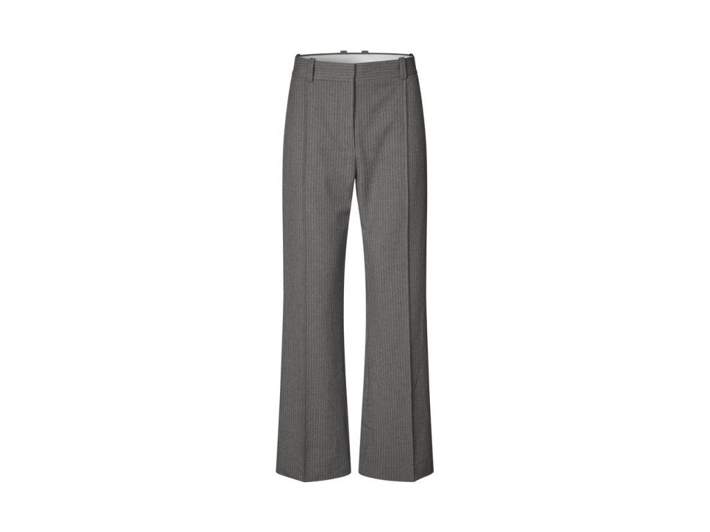 Dámske nohavice s mierne zvýšeným pásom a rovnomerným strihom s rozšírenou nohavicou. Vpredu majú skryté zapínanie na gombík a zips, bočné rozparkové vrecká a na zadnej strane falošné výpustkové vrecká. Pás je doplnený pútkami na opasok a nohavice majú predné a zadné záhyby pre elegantný vzhľad. Hlavný materiál je pružná zmes recyklovaného polyesteru.