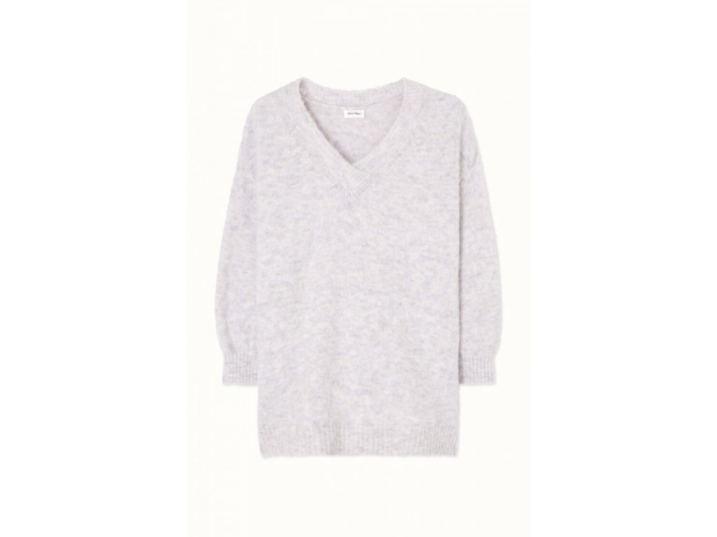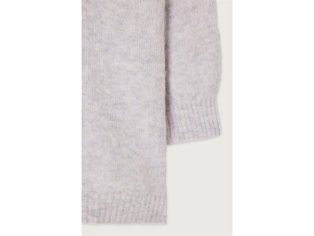 Predĺžený sveter s výstrihom do V v jemnej sivej melange farbe zo zmesi vlny a alpaky.