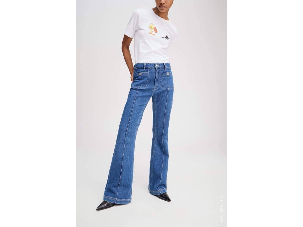 Rifľové nohavice s vyžehlenými záhybmi, dvoma jemnými prednými vreckami, ktoré sa dajú zapnúť na gombík, a dvoma zadnými vreckami. Tieto rifľové nohavice majú elegantnú koženú nášivku MUNTHE na zadnej strane a zapínajú sa na zips a jeden gombík.