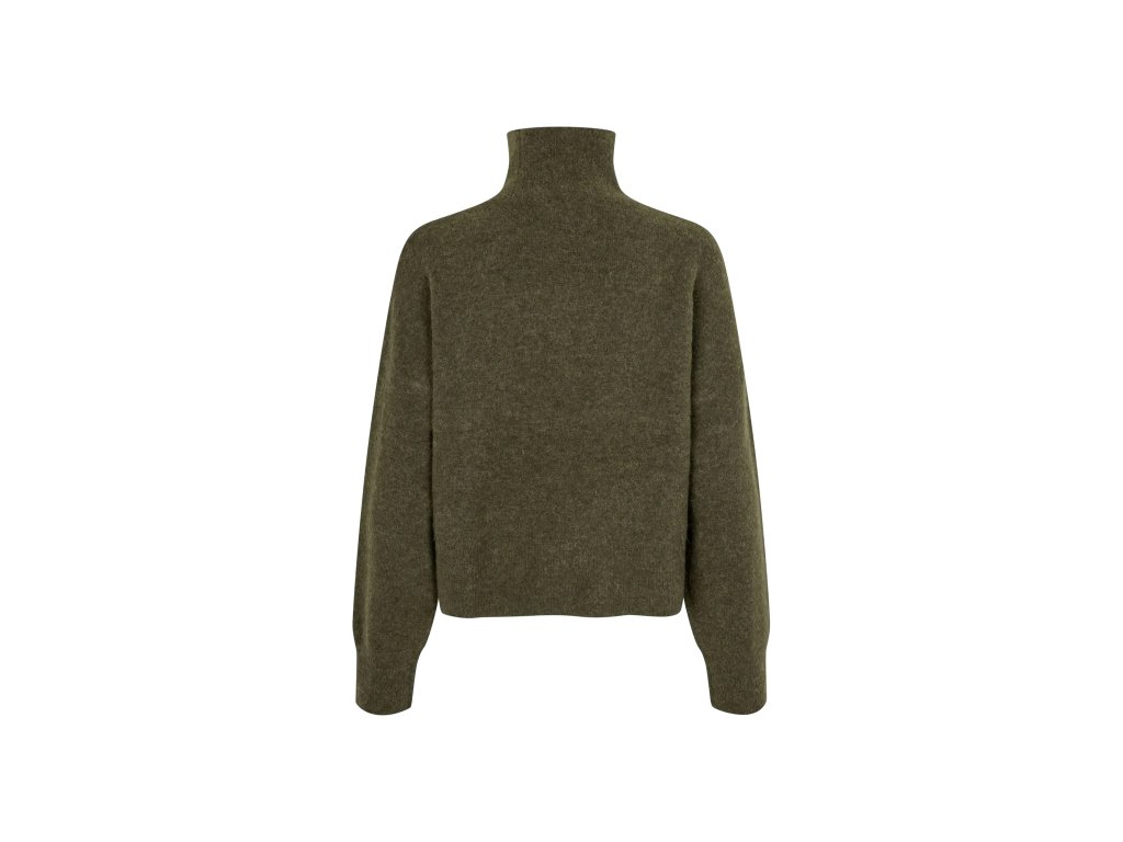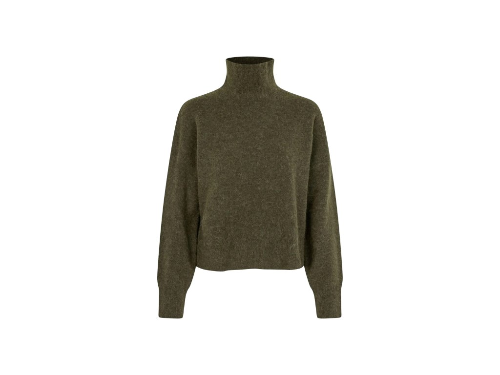 Rolák bežného strihu s padnutých ramenami. Golier, manžety a spodný lem z rebrovaného úpletu. Plne tvarované švy. Hlavný materiál vyrobený zo zmesi vlny, vlny alpaky a recyklovaného polyesteru. Tento produkt je certifikovaný RWS. RWS popisuje a certifikuje dobré životné podmienky zvierat a postupy manažmentu pôdy pri výrobe vlnených vlákien a sleduje certifikovaný materiál od farmy až po konečný produkt.